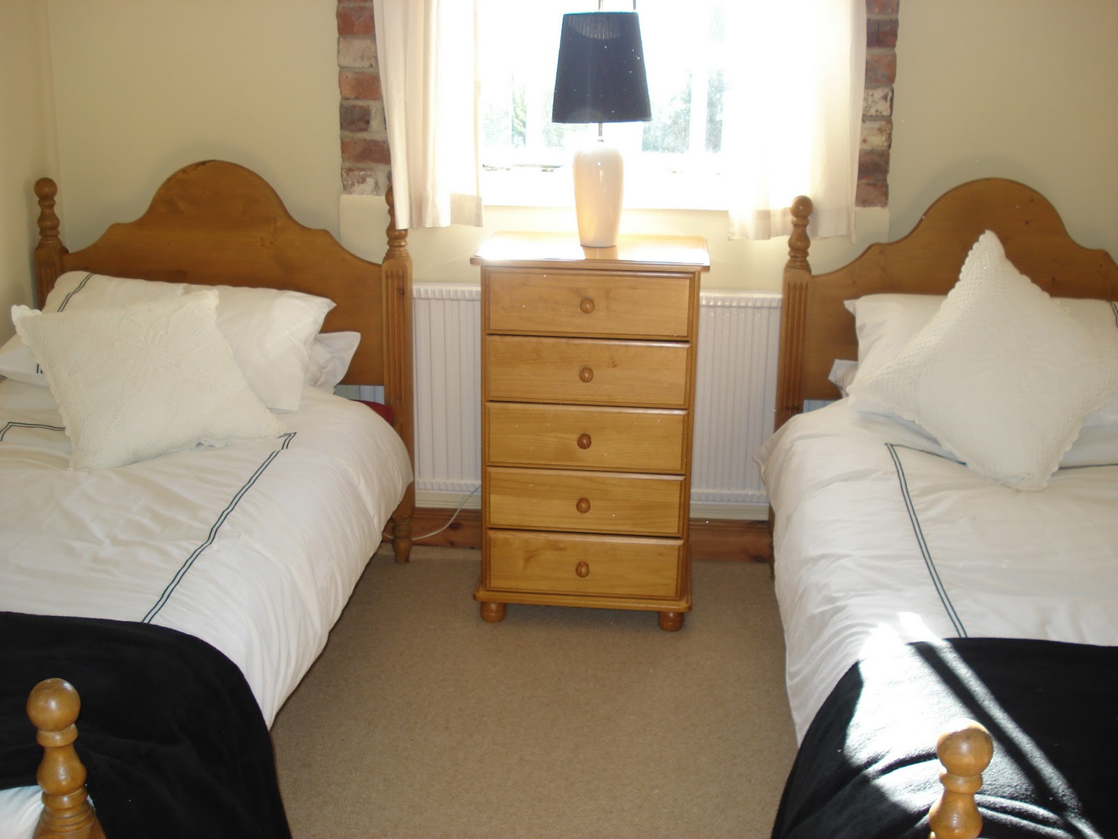 Por lo visto en numerosos hoteles británicos tienen la costumbre de atornillar la mesita intermedia para que no se te ocurra juntar las camas durante la noche. Que conste que también hay fotos de dormitorios con más camas aún y eso ya te deja la moral por los suelos porque parece que vamos a un albergue.